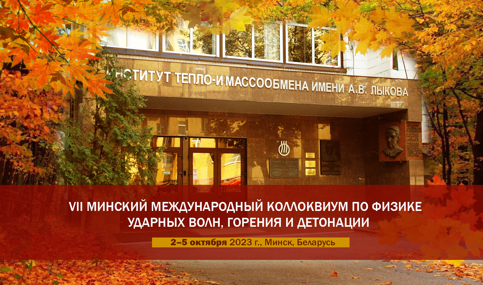 Приглашаем Вас принять участие в работе VII Минского международного коллоквиума по физике ударных волн, горения и детонации, который будет проходить 2 – 5 октября 2023 г. в г. Минске в Институте тепло- и массобмена имени А.В. Лыкова НАН Беларуси.